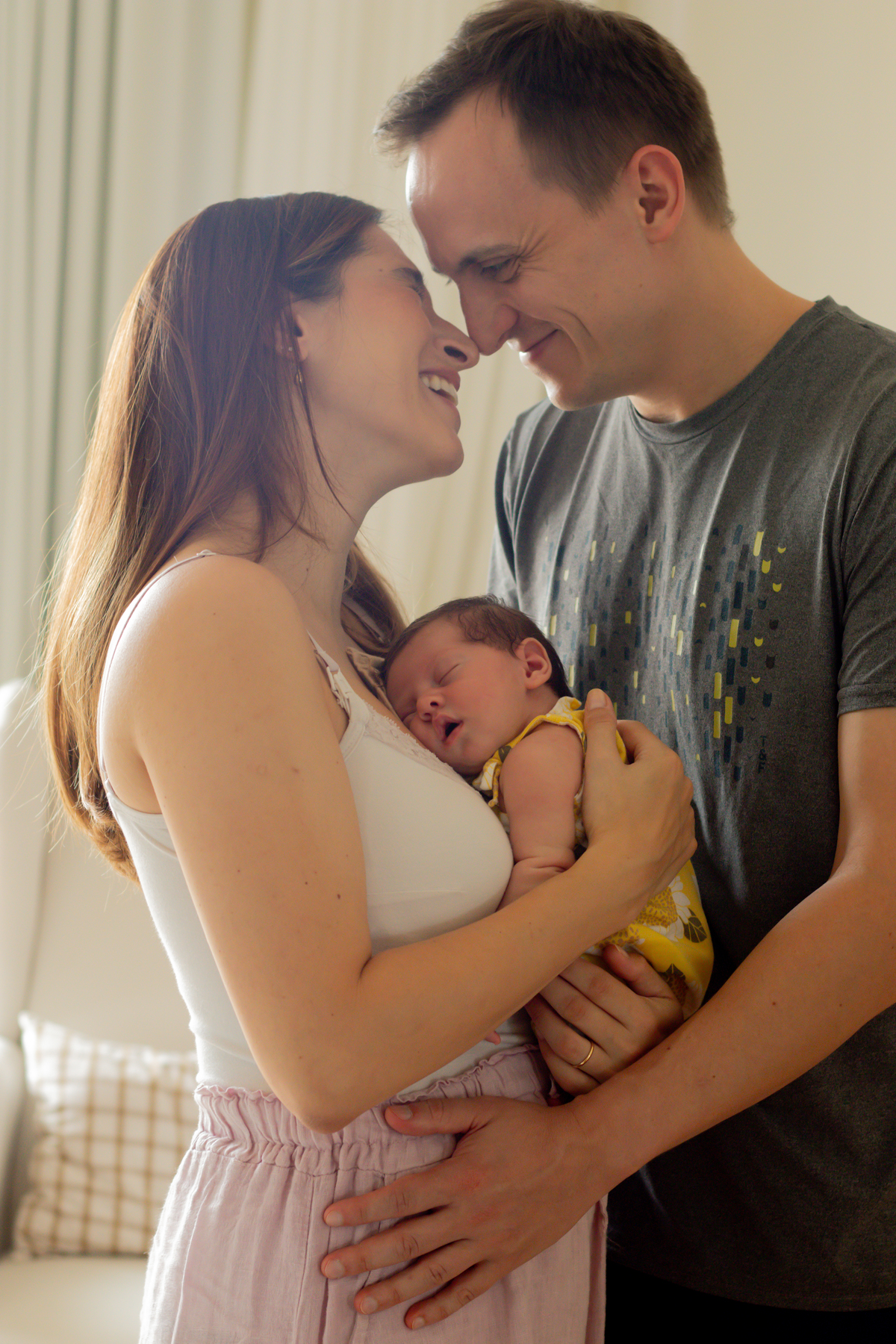 O ensaio newborn home acontece na sua casa, no seu ritmo, sem pressa e sem pose forçada. A ideia não é criar algo perfeito e engessado, mas sim guardar o que esse momento tem de verdadeiro: o cheirinho de bebê, o colo, a luz entrando pela janela, o olhar dos pais que ainda estão descobrindo tudo.
